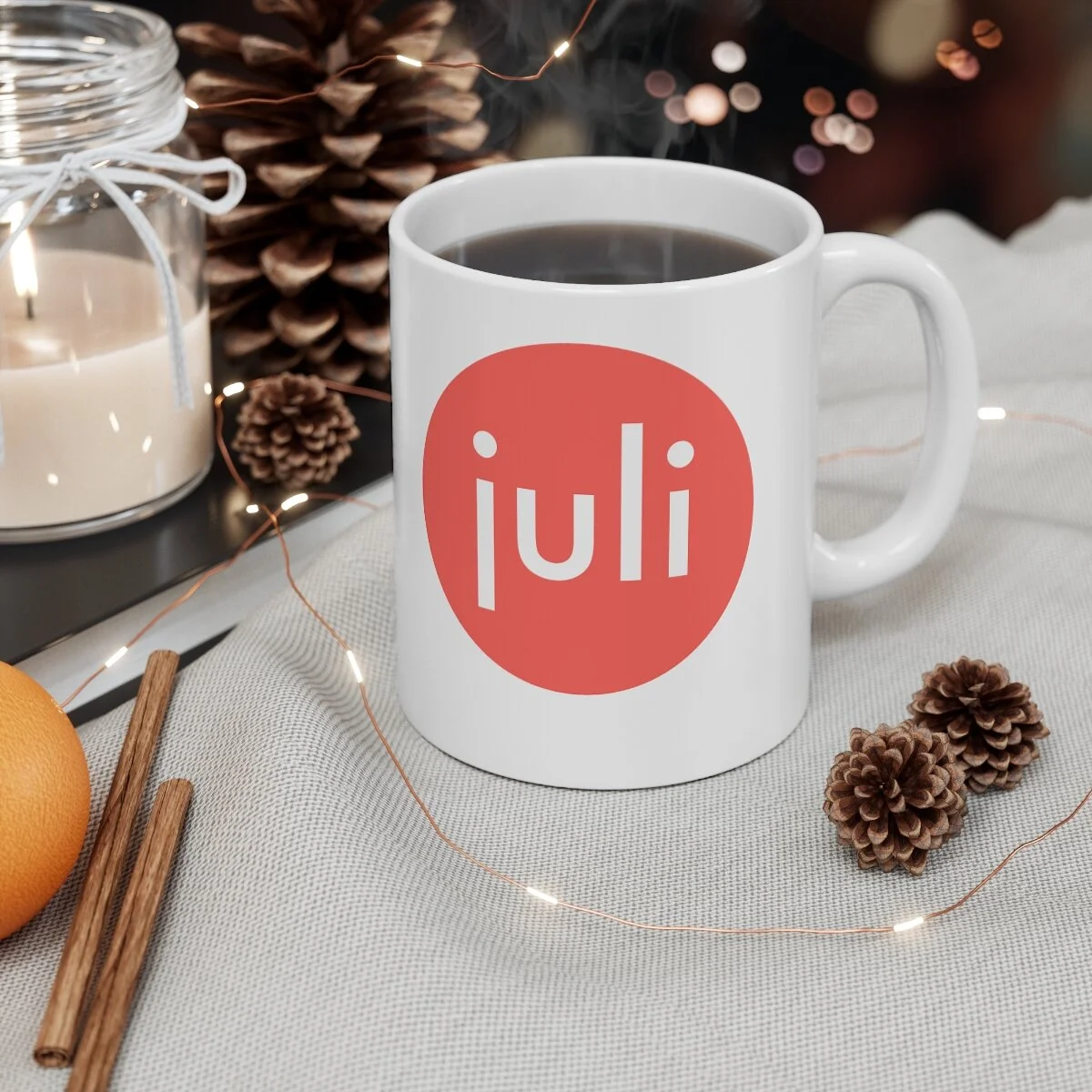 Enjoy your relaxing tea or stimulating coffee while supporting the juli mission! Like every mug you've ever owned, it's awesome at holding beverages, especially hot ones!