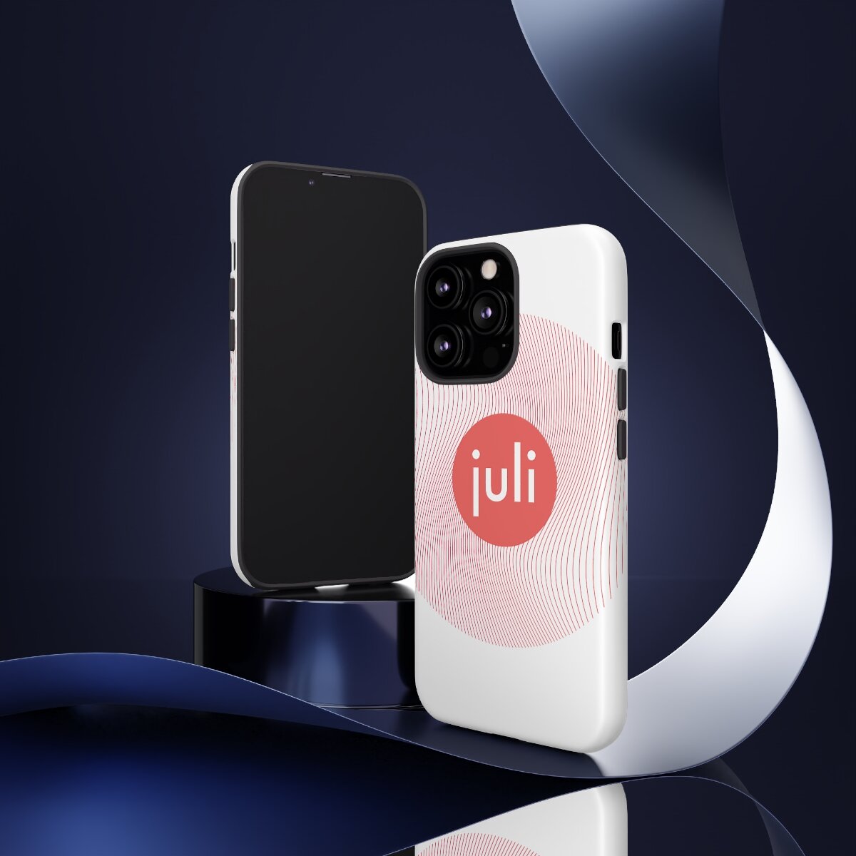 Accessorize your phone and safeguard it at the same time thanks to these customized Tough Cases, keep it safer while you're using juli! These phone cases are made with impact-resistant polycarbonate outer shell and feature an inner TPU liner for extra protection against accidental drops. Keep your phone secure & stylish whether you're headed to the office, wrapped in pastels for a spring time soirée, or sitting on a bench admiring how well you're managing your health.